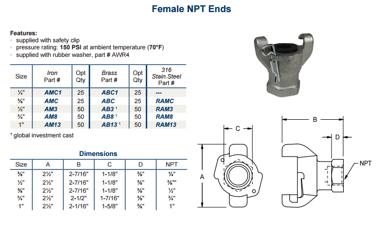 產品名稱:Air King 2-Lug Female NPT end