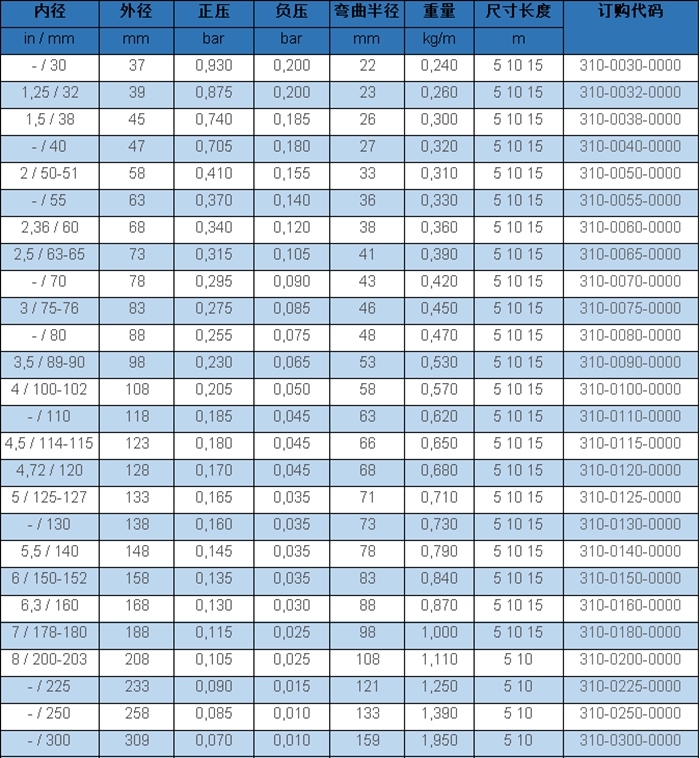 柔性軟管/用于氣體、灰塵、粉體和纖維的軟管輸送,回收裝置,除塵系統(tǒng),過(guò)濾系統(tǒng),油霧回收,電鍍回收,化學(xué)工業(yè):化學(xué)蒸汽,裝載臂蒸汽回流軟管,油漆蒸汽,噴霧回收,X射線機(jī):電纜保護(hù)管道(特殊型號(hào)請(qǐng)咨詢),加熱軟管:外保護(hù)軟管