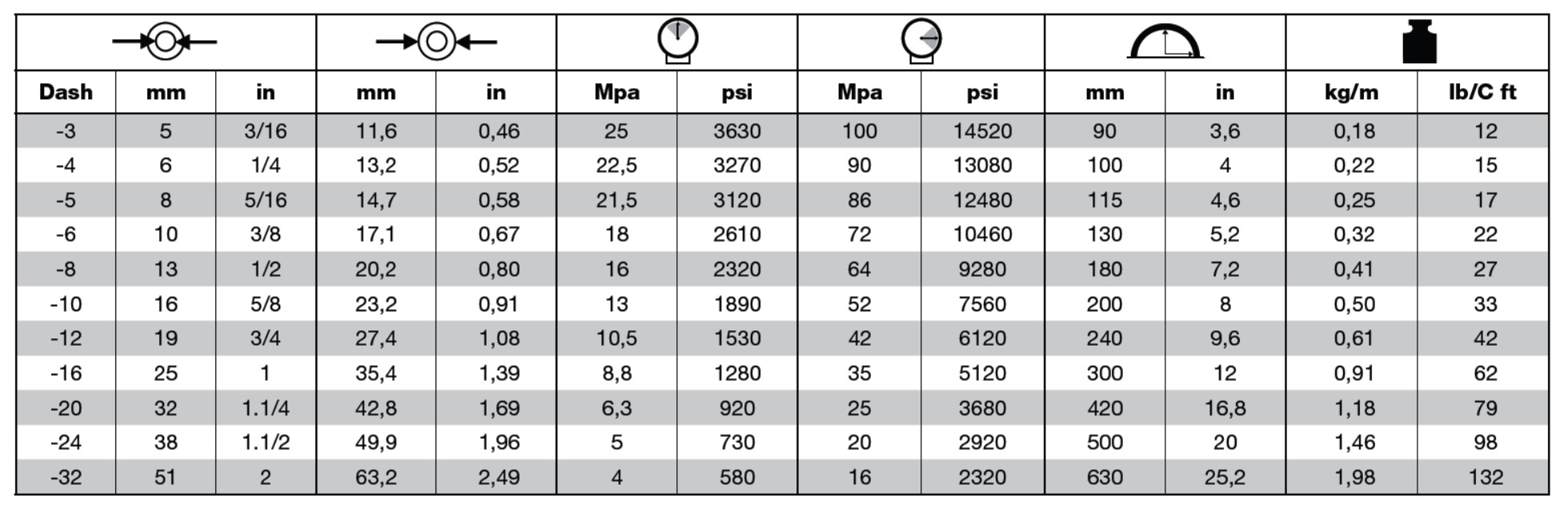應用: 高壓液壓管道(液壓油、防凍劑、空氣和水),環保材料
