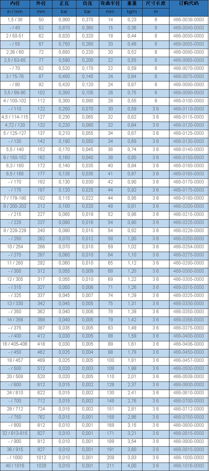 CP結(jié)構(gòu) ,鉗夾型支撐螺旋:鍍鋅鋼,編織加強帶, 管壁厚度: 玻璃纖維涂層的PVC