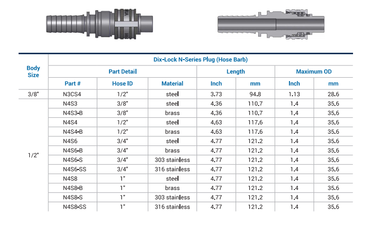 產品名稱:Dix-Lock? N-Series Interchange Male End x Hose Barb Plug
