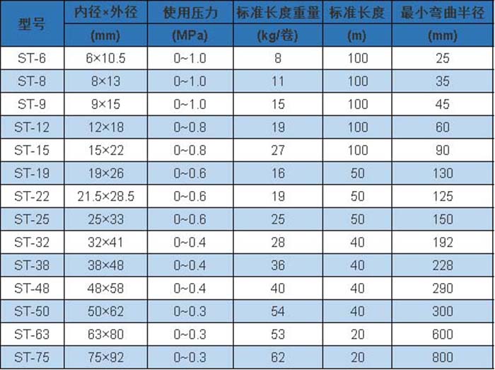 特性:內面耐油性優異,更耐用。柔軟性良好,配管簡便。提供內徑為6φ~75φ的多種產品。