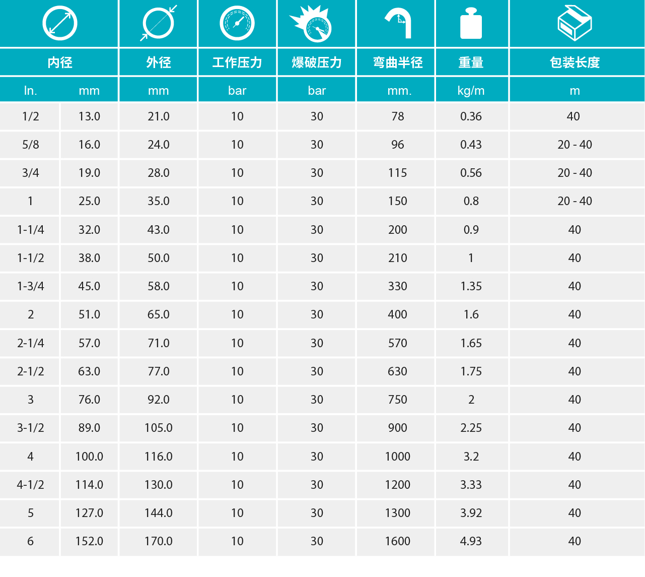 【外層】SBR合成橡膠,紅色,ID≤25mm光滑,ID>25mm表面波紋