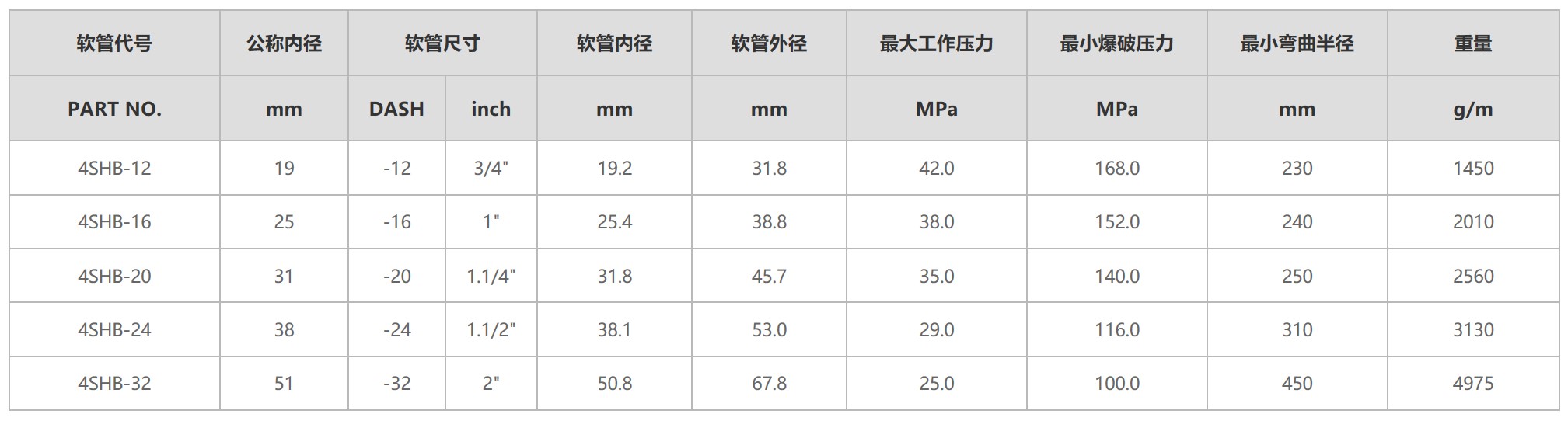 石油基液壓油, 水乙二醇液壓油, 潤滑油, 空氣和水。用于1.7 MPa以上的壓縮氣體場合,軟管需針刺。
