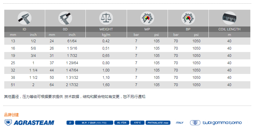 TGT FDA蒸汽清洗膠管 AGRASTEAM/170°C