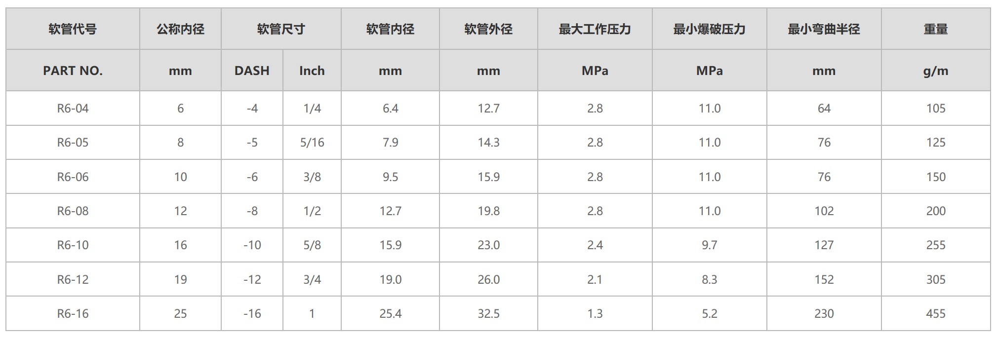 石油基液壓油, 空氣和水。用于1.7 MPa以上的壓縮氣體場合,軟管需針刺。
